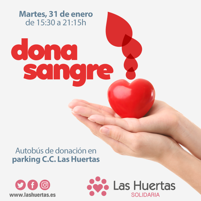 El martes 31 de enero, de 15:30 a 21:15h, en el autobús de donación que estará instalado en el parking de nuestro centro comercial.