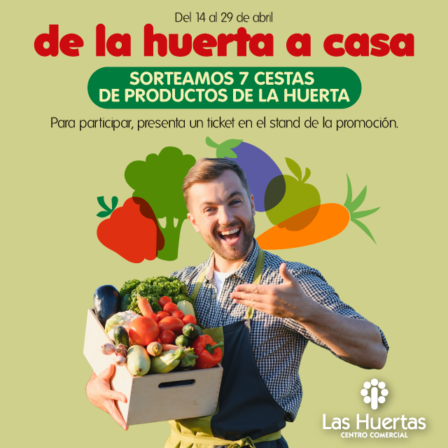 1. La duración de la promoción es desde el 14 al 29 de abril de 2023. Los participantes de la promoción podrán ser todos los clientes del Centro Comercial Las Huertas mayores de 18 años. No tendrán consideración de Clientes y, por tanto, no podrán participar en el sorteo los empleados directos o indirectos del Centro Comercial Las Huertas, los arrendatarios o los cesionarios que presten sus servicios en el Centro Comercial Las Huertas. Así mismo, tampoco tendrán la consideración de Clientes los familiares en primer grado y parejas sentimentales de los empleados referidos.