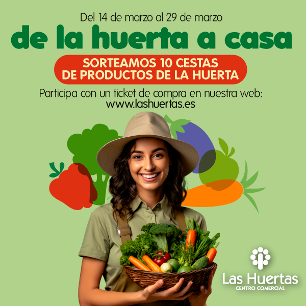 ¡Este marzo, en el Centro Comercial Las Huertas, tenemos una promoción increíble para ti! Desde el 14 hasta el 29 de marzo de 2025, rellena el formulario con tus datos y participa en el sorteo de 10 cestas de productos de la huerta.