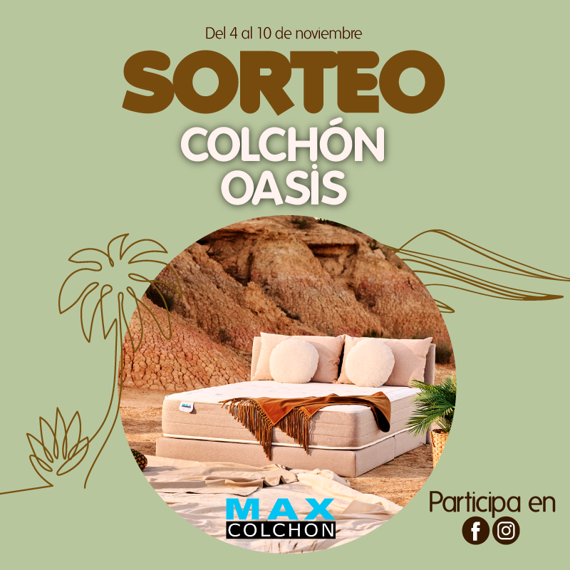 Del 4 al 10 de noviembre, participa en nuestras redes sociales en el sorteo del colchón Oasis de Maxcolchon.